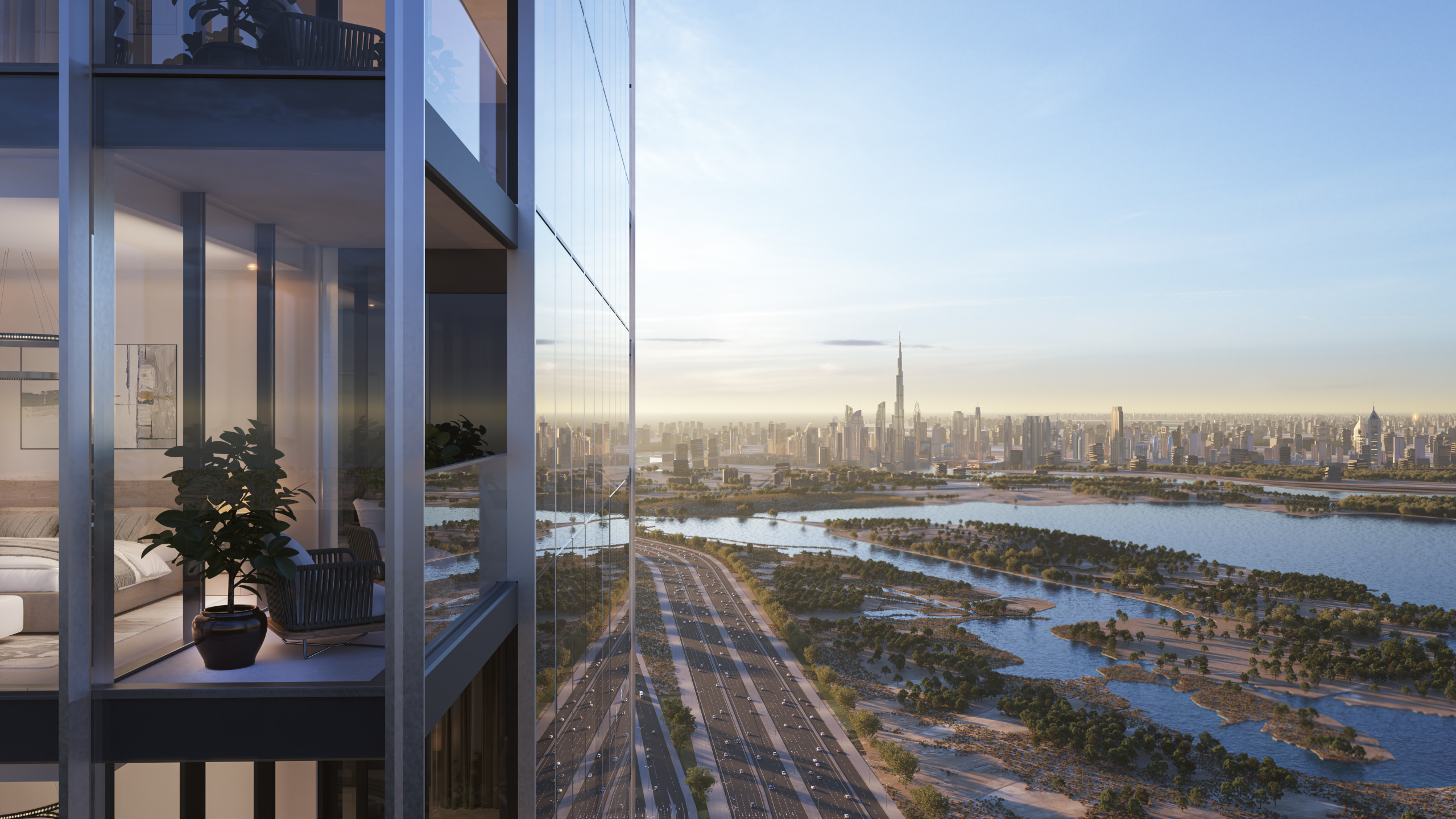 Położony w pobliżu drogi Ras Al Khor, Sobha One to spokojna oaza oferująca zapierające dech w piersiach widoki. Spójrzcie na północ, aby podziwiać spokojne wody zatoki i charakterystyczny Burj Khalifa, a na zachodzie centrum miasta. Ten kompleks o powierzchni ponad 1,5 miliona stóp kwadratowych oferuje bujne pola golfowe i tętniące życiem pejzaże miejskie, zapraszając Państwa do podziwiania jego piękna pod każdym kątem.